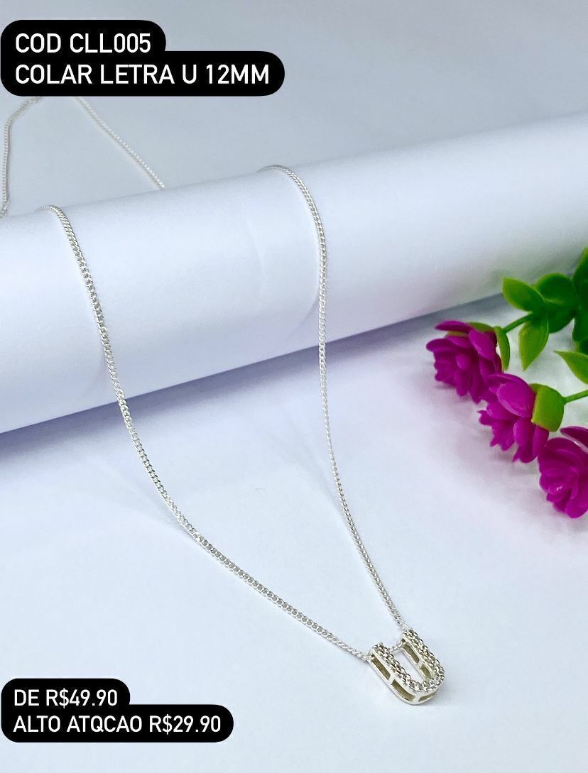 Com sua letra U em destaque, o design minimalista e sofisticado do colar se destaca em qualquer ocasião. O acabamento polido da prata reflete a luz de maneira deslumbrante, enquanto o tamanho de 12mm torna esta peça ideal para o uso diário ou para eventos especiais.